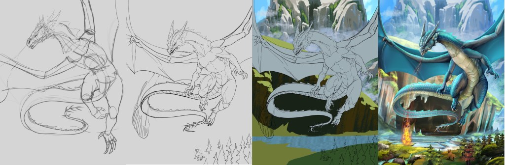 Et pour l’anecdote, la 3ème histoire, les cauchemars du dragon, n’est encore qu’un embryon, quelques notes jetées dans un document. Je sais que l’histoire doit sortir de ma tête. Je veux que mes trois premiers géants aient chacun leur tome. Commander l’illustration avait pour but de me remettre à l’écriture. Mission accomplie.
