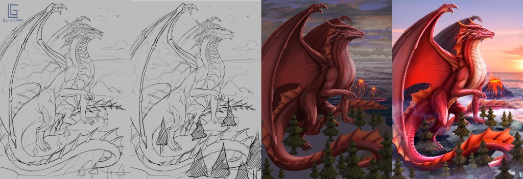Redevenons sérieux, pour que j’ai un résultat convenable, je démarre les recherches d’un illustrateur sur une plateforme de freelance internationale. On y trouve toutes formes d’artistes, à tous les prix. Le hasard m’envoie sur El Geron. Son portfolio d’illustrations fantasy m’a amené à lui confier mon projet. Je découvrirai au cours de nos échanges, que c’est un artiste philippin.